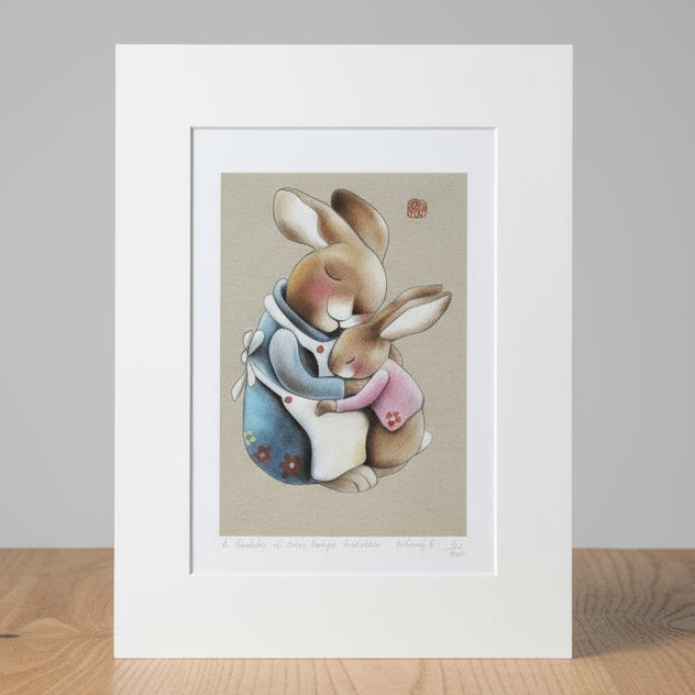 Each artwork comes ready-framed in a white frame measuring 16 × 21 cm, with an insert size of 13 × 18 cm (5 × 7 inches). The front cover is made of clear polystyrene film instead of glass, making it lightweight, safe, and child-friendly. A clean white edge is left around the artwork for a simple, modern presentation.